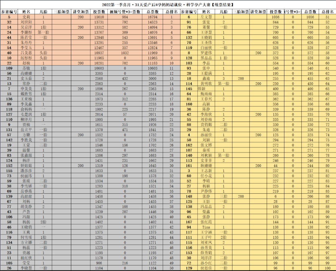 #孕媽媽請就位·科學孕產(chǎn)大賽前100名名單